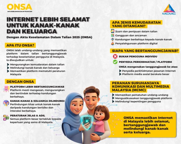 Menjadikan Internet Lebih Selamat untuk Kanak-Kanak dan Keluarga ONSA memperkenalkan tanggungjawab yang lebih jelas ke atas pemberi perkhidmatan pesanan Internet dan media sosial yang dilesenkan di Malaysia untuk melindungi pengguna daripada kandungan berbahaya dalam talian, dengan fokus khusus terhadap perlindungan […]